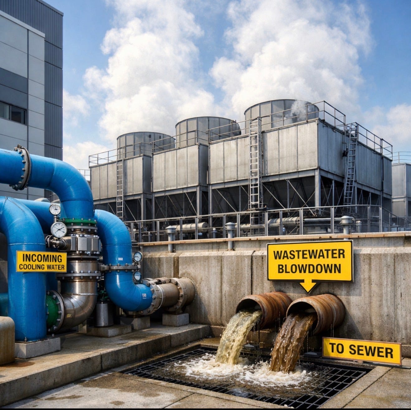 But here’s the part that doesn’t show up in the glossy tech company brochures: most of the water used to cool data centers simply disappears. When a data center uses evaporative cooling or cooling towers, the water doesn’t just circulate and return to where it came from. Instead, somewhere between 70% and 80% of it literally evaporates into thin air. It transforms into water vapor that drifts away as steam. You can sometimes see it: that cloud rising from a data center facility. That’s water leaving the local water system forever. It doesn’t flow back into rivers or reservoirs. It doesn’t return to the municipal water supply. It just vanishes into the atmosphere. The remaining 20-30% doesn’t fare much better. It becomes what’s called “blowdown.” This is water so concentrated with minerals and salts from the cooling process that it can’t be used anymore. This gets flushed into the sewer system as wastewater.